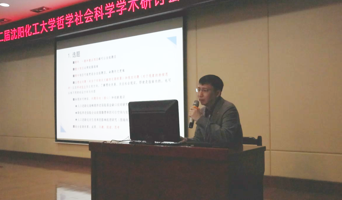 5月17日,由沈阳化工大学科学技术研究院主办,沈阳化工大学人文与艺术学院、体育部承办的第二届沈阳化工大学哲学社会科学学术研讨会(第三分论坛)在我校图书馆五楼报告厅顺利举行。此次论坛邀请了辽宁大学人口研究所副所长金刚教授做主题报告,来自人文与艺术学院的曹迪、赵彤、肖赛玥、郑童、崔嵩泽和来自体育学院的李壬冬、陈兵分别围绕各自的研究方向做了学术报告。科学技术研究院张建伟教授、人文与艺术学院李漫红教授、体育部杜大勇教授等嘉宾出席。论坛由人文与艺术学院科研副院长陈英杰主持。