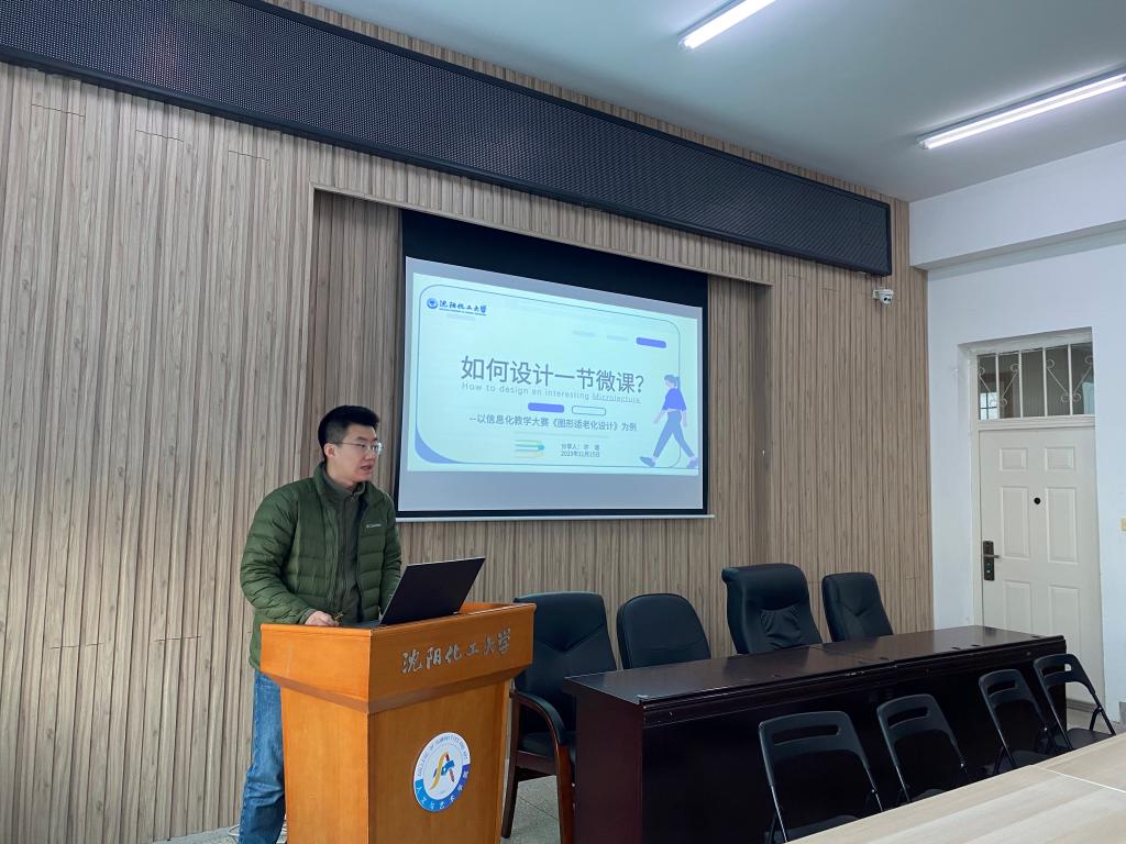 11月15日,人文与艺术学院第二十七届辽宁省教育教学信息化交流活动一等奖获得者许速老师在敬仲楼418会议室开展了题为“如何设计一节微课——以信息化教学大赛《图形适老化设计》为例”的分享报告,学院全体教师参加会议,会议由王立强副院长主持。