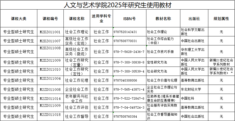 人文与艺术学院2025年研究生使用教材排查情况台账