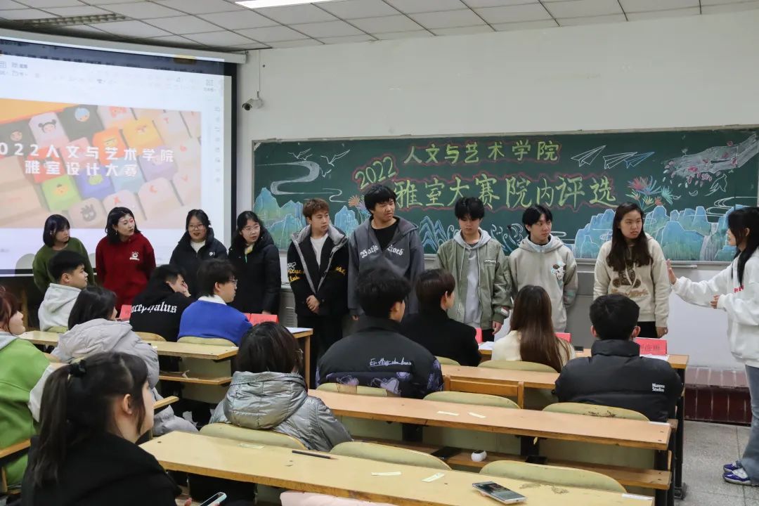 为促使广大同学积极参与寝室文明建设,创造积极向上,和谐健康的寝室环境,营造学习生活氛围,促进大学生身心发展,增强学生之间的友谊和谐创作新精神。2022年11月20日人文与艺术学院举办了主题为:“‘室’逢其会,一见终‘寝’”的雅室大赛。