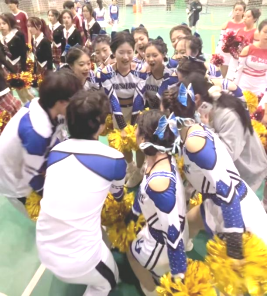 当音乐响起,队员们以饱满的热情和整齐划一的动作点燃全场。高难度的托举、充满活力的舞步,赢得现场观众阵阵欢呼。然而,意外还是发生了。第二轮比赛进行到一半时,现场音响突然出现故障,音乐戛然而止。那一刻,队员们有一瞬间的慌乱,但很快就镇定下来。王思予同学迅速安抚队员情绪,王伟豪同学则第一时间与相关负责人沟通,等候工作人员安排。工作人员尝试用其他小型设备替代,但均未成功,最后临时找来替代设备。这期间,队员们先后两次重新上场又下场等待,平时训练时短短的十五分钟在当时显得格外漫长。队员们互相加油打气,调整状态。